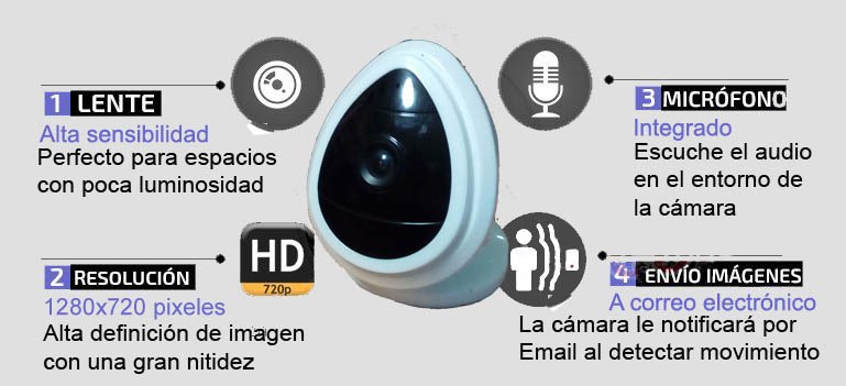 La más rápida de instalar. Vea al momento la actividad de su casa o negocio instalando una cámara. El sistema se puede ampliar con tantas cámaras como se desee, y verlas con calidad HD, desde su teléfono tablet u ordenador todas juntas, por separado o secuencialmente. También puede escuchar el sonido. Además de ver lo que ocurre, en cuanto la cámara detecte un intruso (se puede programar la zona de detección), le enviará un correo electrónico con una imagen de lo que ha percibido. Así en cuanto ocurra algo se enterará al momento.
